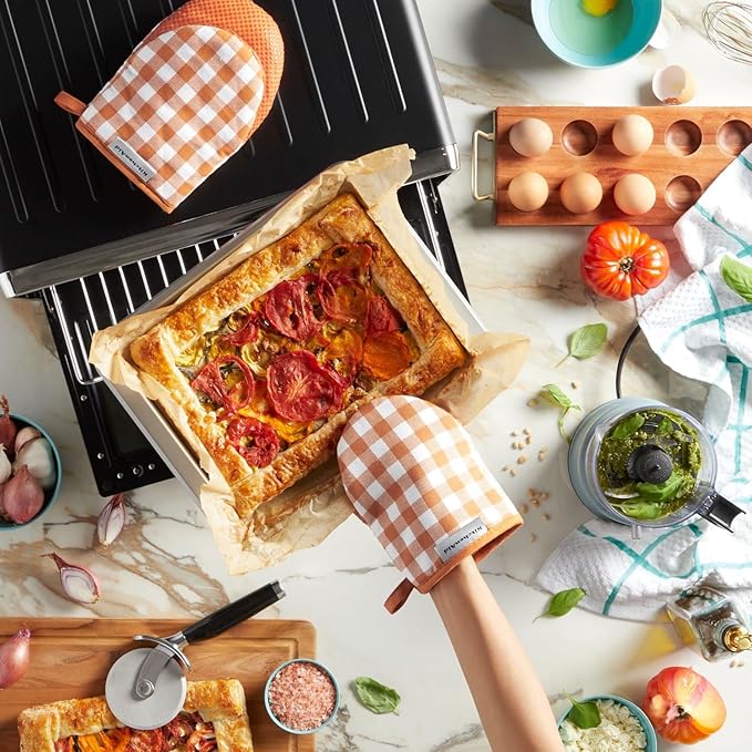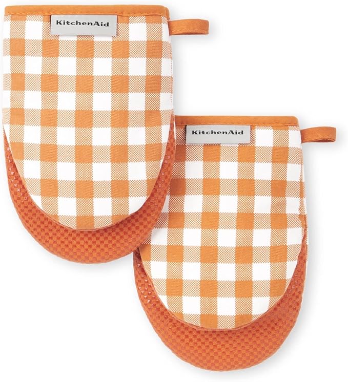 KitchenAid Gingham Mini Oven Mitt 2-Pack Set, Honey, 5.5"x8"