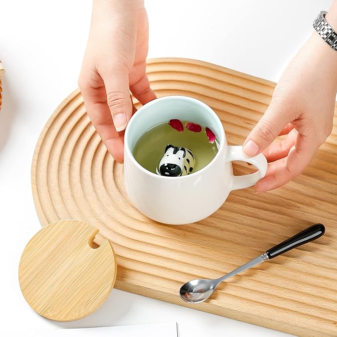 BigNoseDeer Zebra Mug Cute Mugs with 3D Zebra Inside Ceramic Coffee Mug Tea Cup with Spoon and Lid Cool Stuff Birthday Mother's Day Cute Gifts for Women Kids 12ozļ¼Zebraļ¼