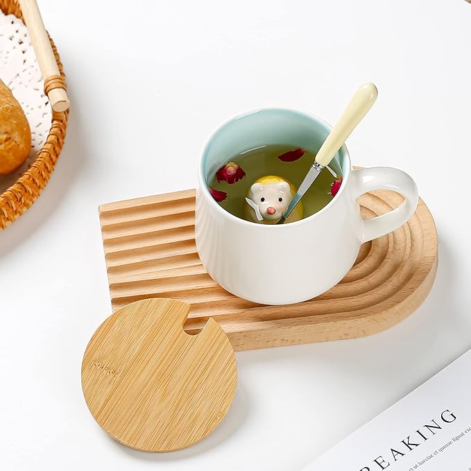 BigNoseDeer Hedgehog Mug Cute Mugs with 3D Hedgehog Inside Ceramic Coffee Mug with Spoon and Lid Mugs for milk,coffee and tea lovers Birthday Cute Gifts for Women 13.5oz