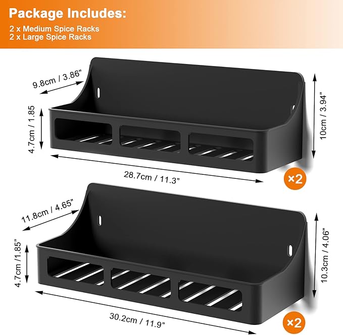 Magnetic Spice Rack for Refrigerator and Oven, 4 Pack Moveable Magnetic Shelves for Spice Jars, Heavy Duty Seasoning Rack Easy To Install For Kitchen Pantry kitchen organizers and storage