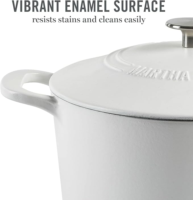 MARTHA STEWART Gatwick 7-Quart Enamel Cast Iron Dutch Oven Pot with Lid – Matte White – Durable Heavy-Duty Dutch Oven for Slow Cooking, Braising & Baking