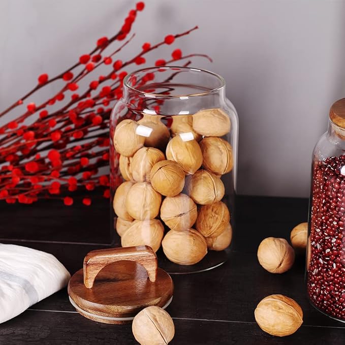SAIOOL Canister Set of 2, Glass Kitchen Canisters with Airtight Acacia Lid, Tall Clear Airtight Food Storage Jar, Kitchen Pantry Storage Container for Noodles Flour Cereal Coffee