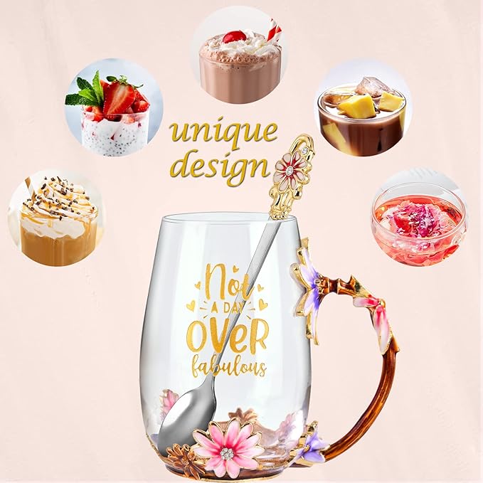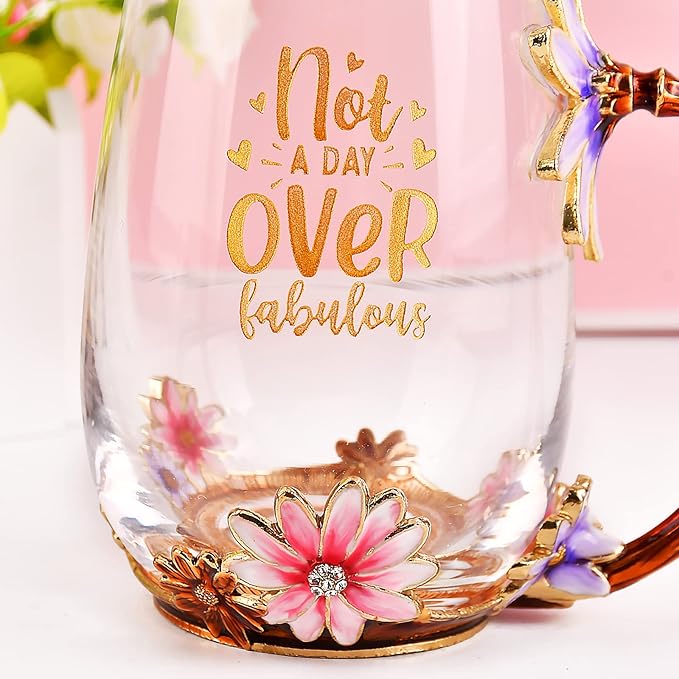About This Beautiful Elegant Mug:Our enamel glass mug is handmade and has an elegant style with purple pink flower 3D... Read more