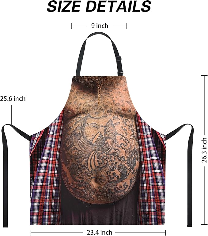 Funny Men Cooking Grilling Aprons Tattoo Belly BBQ Funny Gag Gifts for Christmas, White Elephant Gift Exchange (Tattoo, One Size)