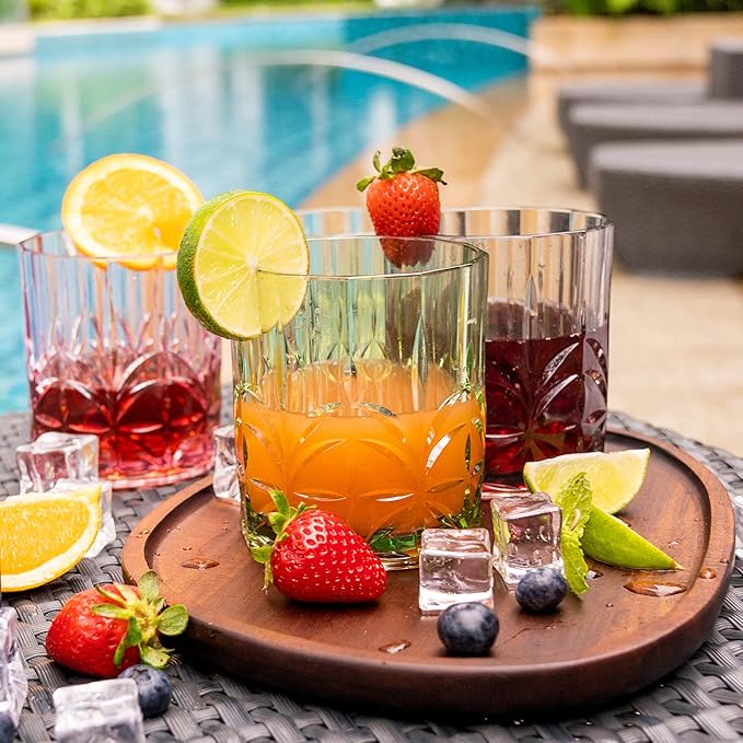 BELLAFORTE Shatterproof Tritan Plastic Short Tumbler, Set of 4, 13oz - Myrtle Beach Unbreakable Crystal Cut Old Fashioned Drinking Glasses for Whiskey - BPA Free - Dishwasher Safe - Green