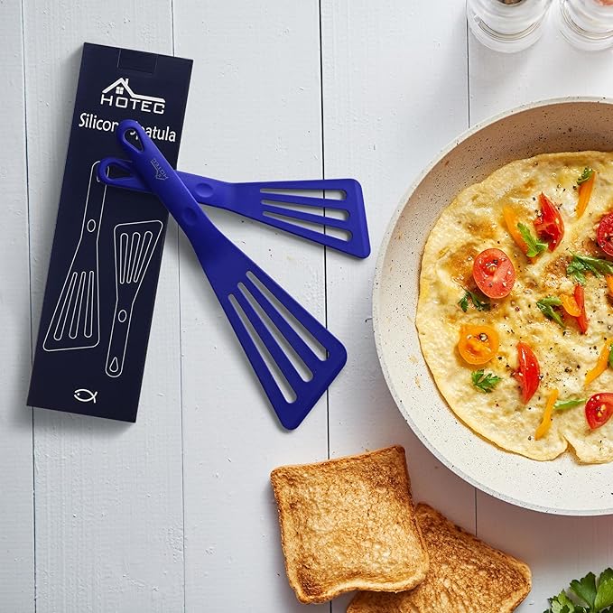 HOTEC 600℉ Heat Resistant Silicone Slotted Fish Turner Spatula Set, BPA Free Kitchen Cooking Spatulas, for Non Stick Cookware Dishwasher Safe Classic Blue, set of 2