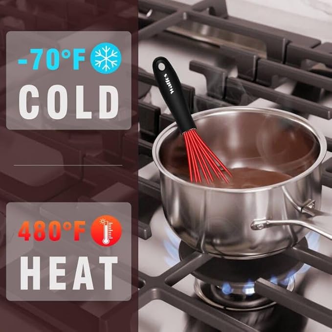 Walfos Mini Whisk Red Small whisk-Non Scatch Rubber Coated Whisk,small silicone whisk 5 & 7 inch Tiny Whisk,Nice for mixing and stirring small batches of powder and sauce in small bowl containers.2pcs