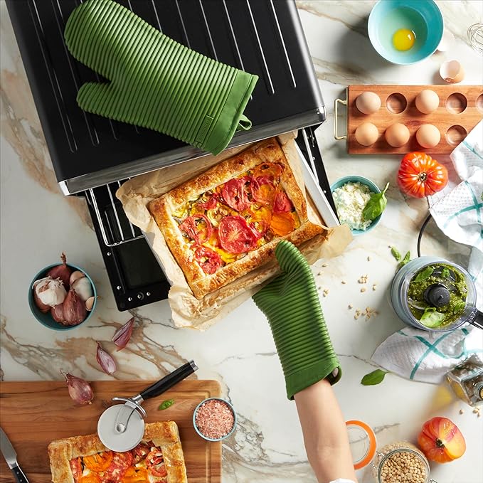 KITCHENAID Ribbed Soft Silicone Oven Mitt 2-Pack Set, 7.5"x13", Matcha