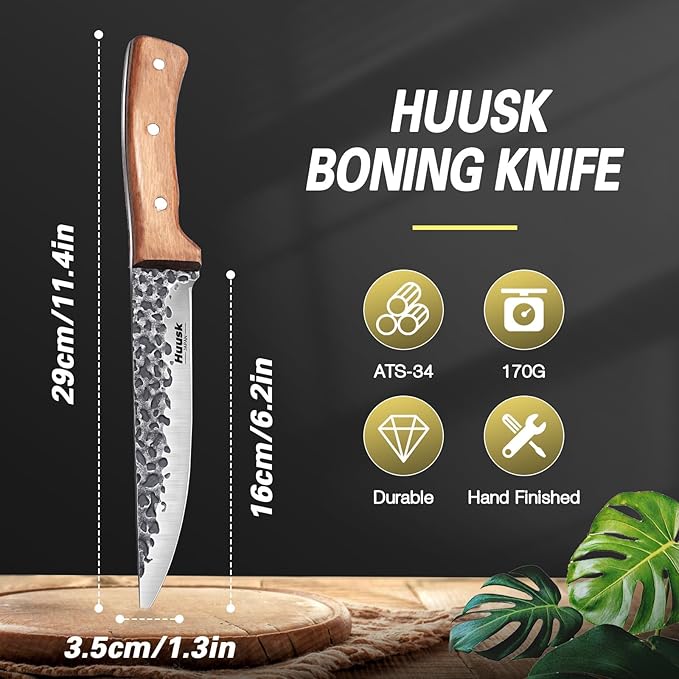 Huusk Knives from Japan, Boning Knife for Meat Cutting 6 inch, Butcher Knife for Brisket Trimming, Viking knife with Sheath, Full Tang Kitchen Utility Knife, Gift for Fathers