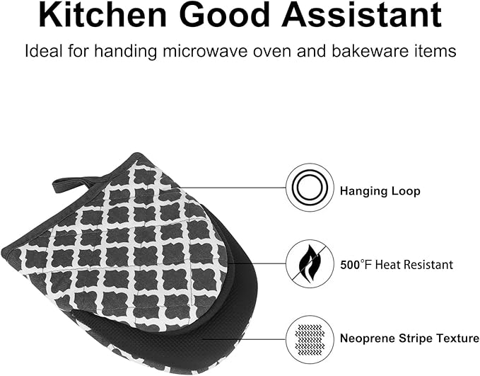 • PROTECT YOUR HANDS: These pot holder has 2-layer, with soft inner. They will protect your hands from heat, steam and grease. These mitts measure 6.8 inches x 5.3 inches, perfect for small hands.