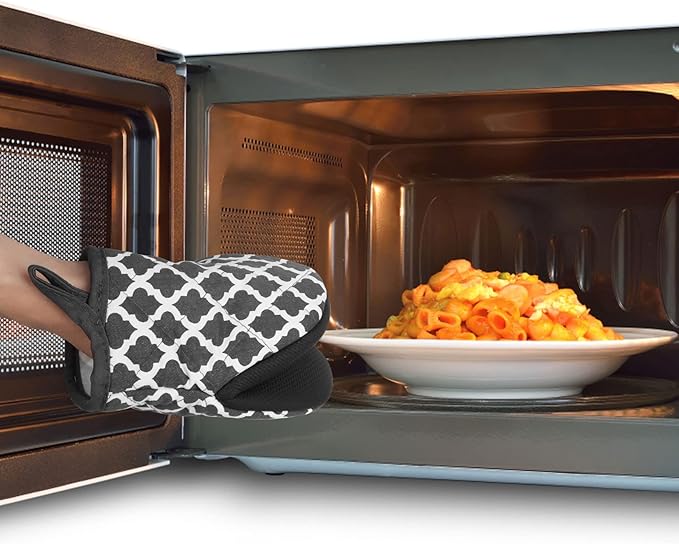 1 Pair Short Oven Mitts, Heat Resistant Silicone Kitchen Mini Oven Mitts for 500 Degrees, Non-Slip Grip Surfaces and Hanging Loop Gloves, Baking Grilling Barbecue Microwave Machine Washable