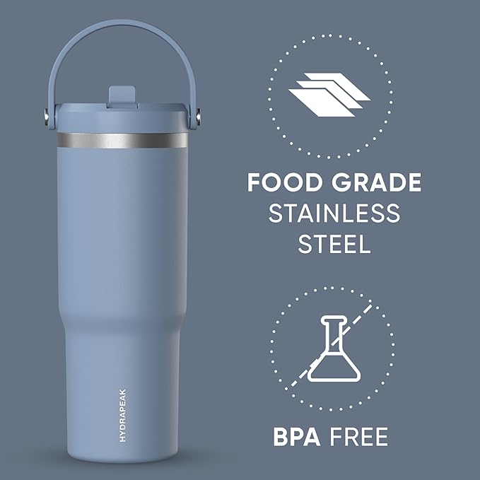 Hydrapeak Nomad 32 oz Tumbler with Handle and Straw Lid, Leakproof, Double Insulated, 32oz Cup Stainless Steel (Modern Blue)
