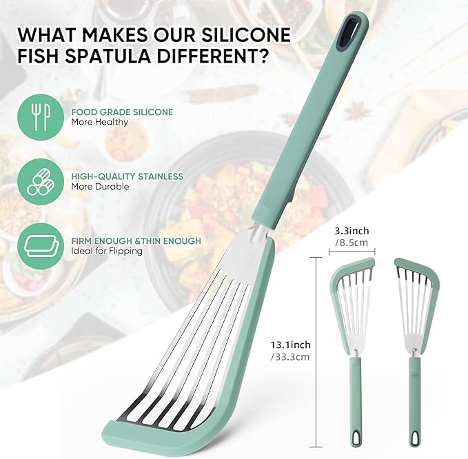 About This PROFESSIONAL CHEF KITCHEN FISH SPATULAS: This silicone fish spatula is a go-to in professional kitchens.Main for flip fish,egg... Read more