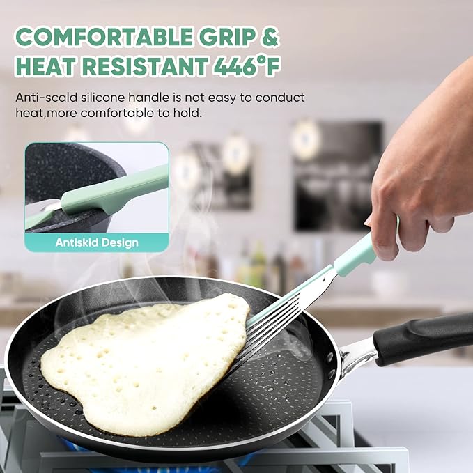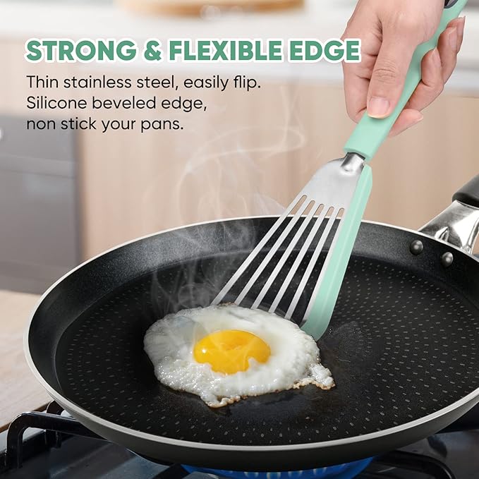 Nonstick Fish Spatula,Maywe Tanso Thin Slotted Spatulas Turner Silicone Fish Spatulas for Nonstick Cookware,High Heat Resistant BPA Free Cooking Utensils,Ideal for Fish,Eggs,Pancakes