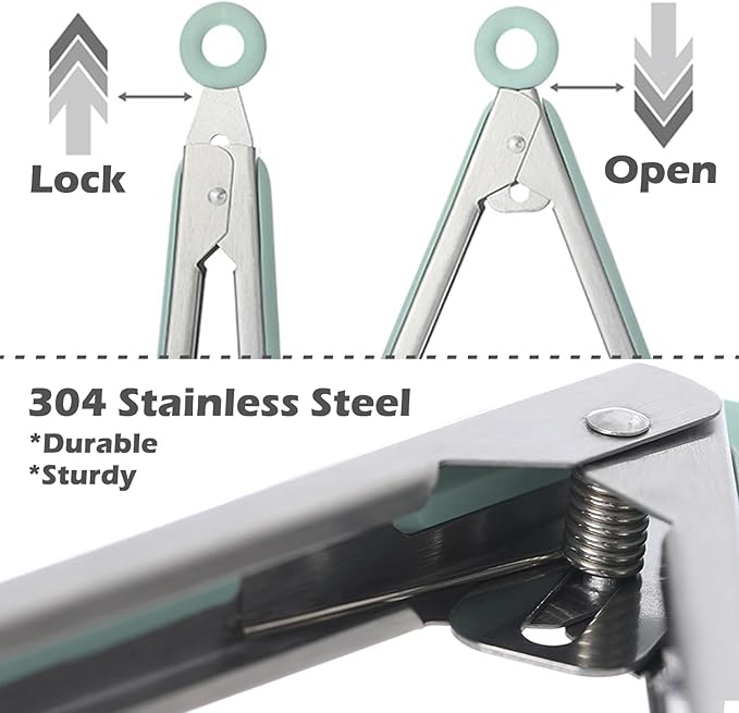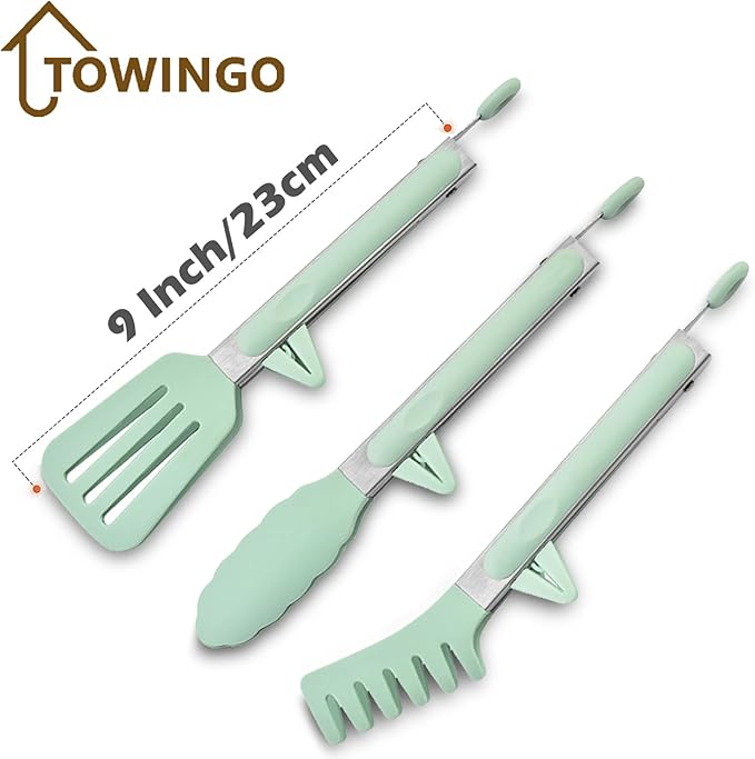 Kitchen Tongs for Cooking, 9 Inch Small Silicone Tongs, Food Grade Mini Serving Tongs with Silicone Tips, Set of 3, Green