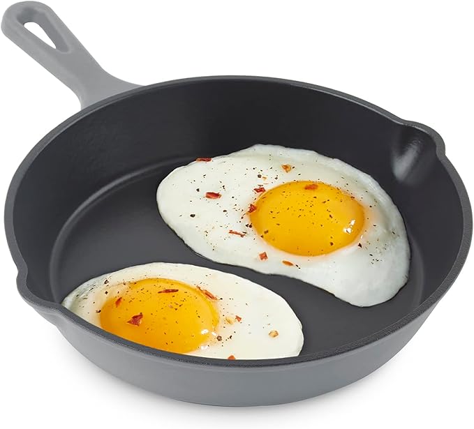 DASH Zakarian 7.5" Nonstick Cast Iron Skillet with Pour Spouts for Searing, Baking, Grilling, Roasting and More - Grey