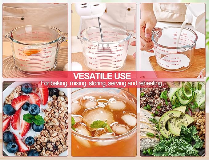 About This VERSATILE SET: This set includes (1) 1-cup/250ml, (1) 2-cup/ 500ml, and (1) 4-cup/1000ml glass measuring cups PREMIUM GLASS:... Read more