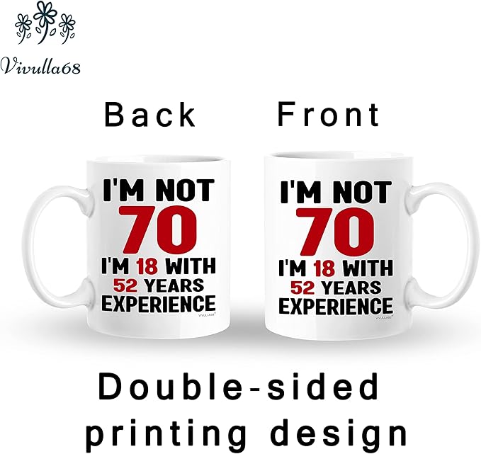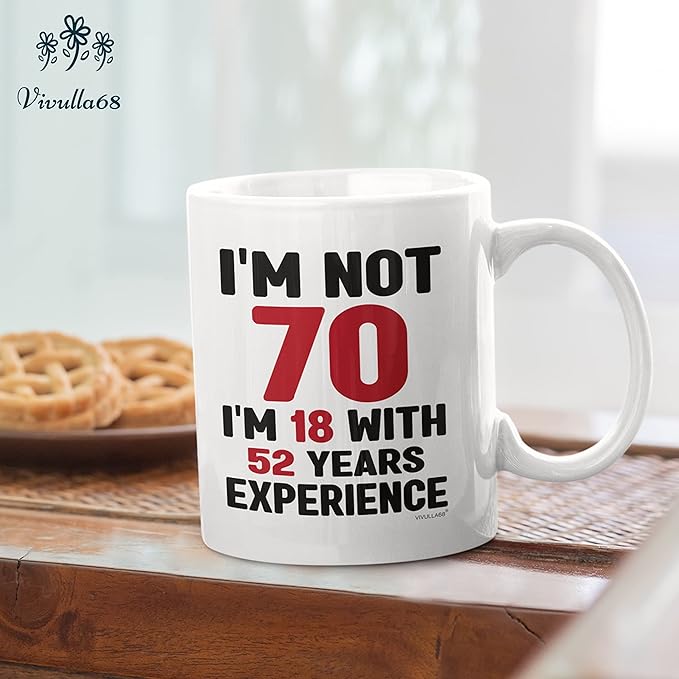 Vivulla68 70th Birthday Mug 11oz, 70 Year Old Birthday Gifts for Men - Funny Gift for Women, Men - Vintage 1955 Coffee Cup - Unique Present for Man, Woman, Mom, Dad, Grandma, Grandpa - Turning 70 Idea