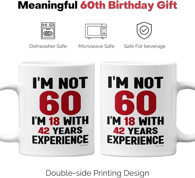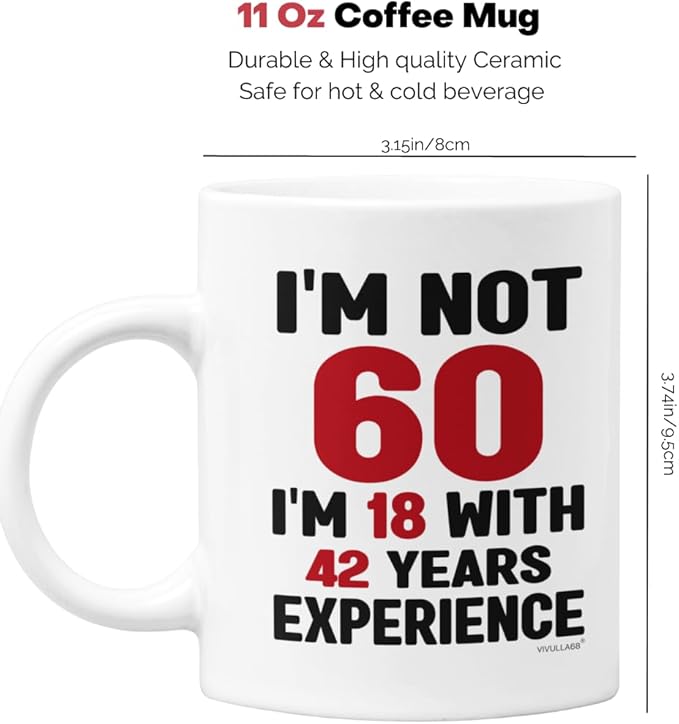 Vivulla68 60th Birthday Coffee Mug - Fabulous 1965 Gifts for Women and Men, Funny Gag Present for Mom, Sister, Sixty Year Old Party Cup, Drinking Mugs for Lady Turning 60 Year of Fabulous