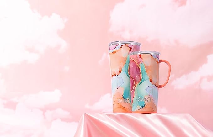 Swig Life 22oz Travel Mug, Insulated Tumbler with Handle and Lid, Cup Holder Friendly, Dishwasher Safe, Stainless Steel, Travel Coffee Cup, Insulated Mug with Lid (Dreamsicle)