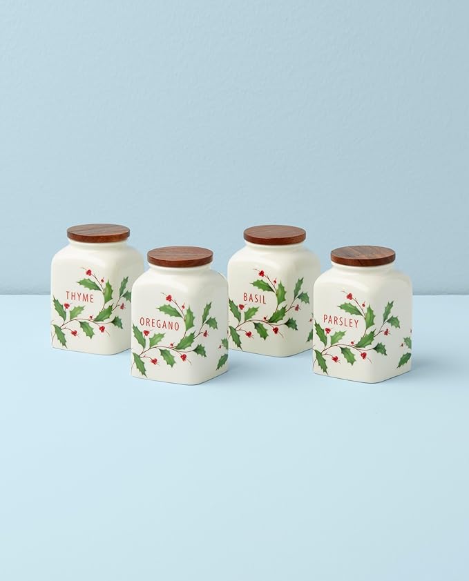 Lenox 895049 Holiday Cooking Spice Jars, Set of 4, Christmas Theme
