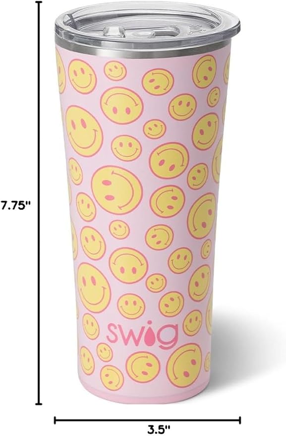 Swig Life 22oz Insulated Tumbler, Travel Coffee Tumbler with Lid, Cup Holder Friendly Travel Coffee Mug, Stainless Steel (Oh Happy Day)