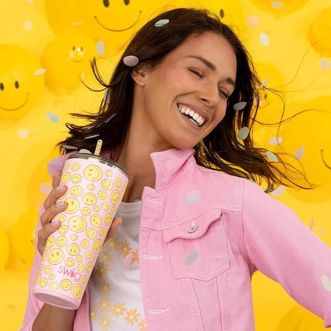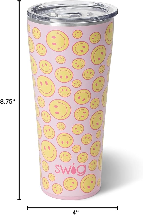 Swig Life 32oz Insulated Tumbler, Travel Coffee Tumbler with Lid, Cup Holder Friendly Travel Coffee Mug, Stainless Steel with Lid (Oh Happy Day)