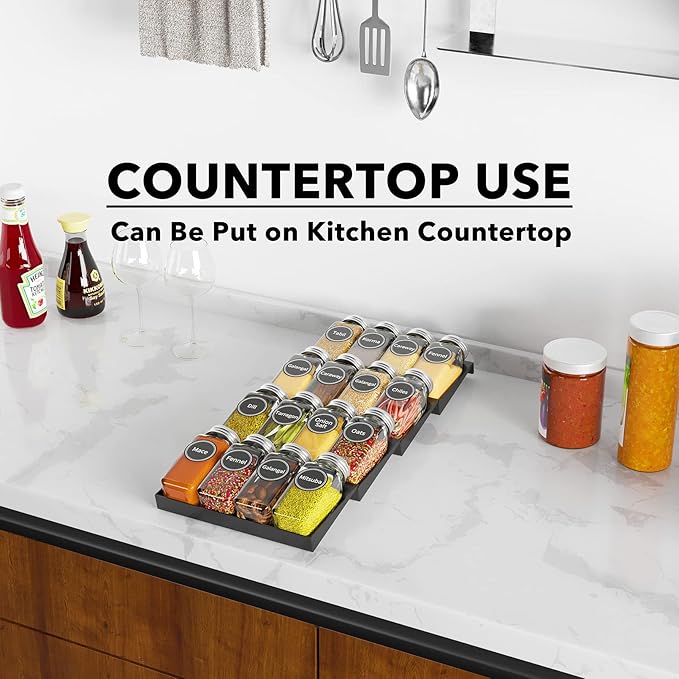 About This Complete Drawer Spice Organizer Set: 1 x Drawer Spice Rack, 16 x Square Empty Glass Spice Jars, 386... Read more
