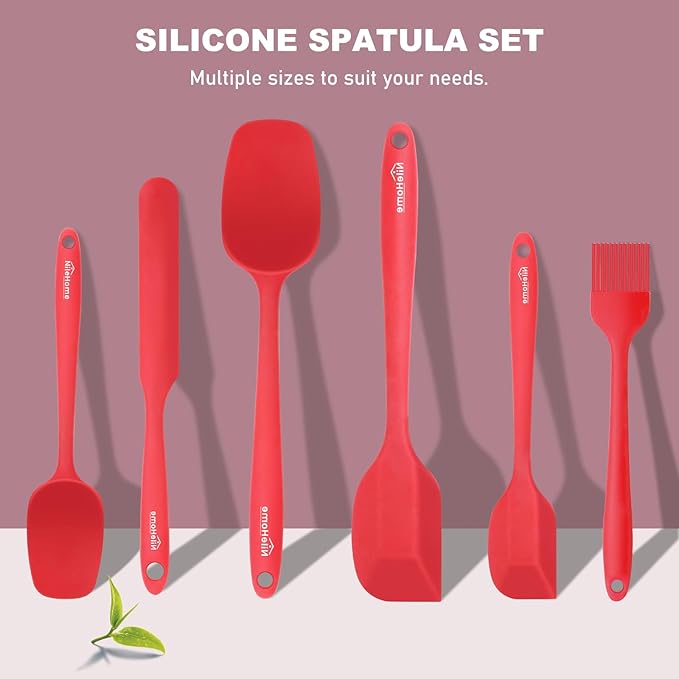 NileHome Silicone Spatula Set 6 Packs Food Grade Kitchen Utensils with Silicone Brush Heat Resistant BPA-free Rubber Spatula for Scraping, Baking, Cooking, Mixing, Red