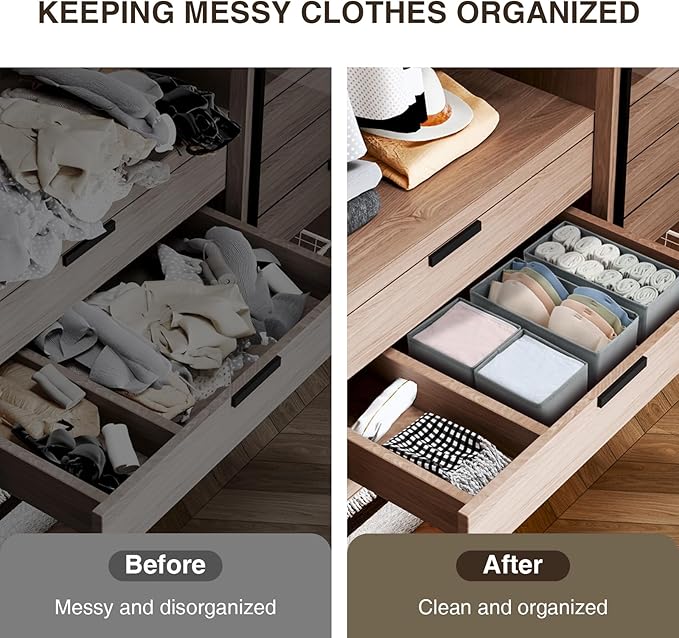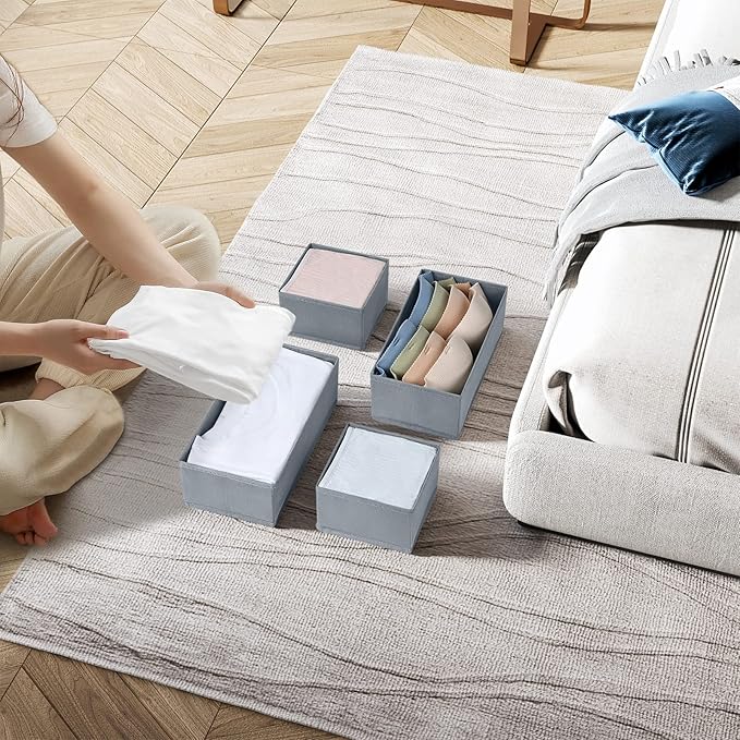 DIMJ Drawer Organizers Clothes, Set of 4 Dresser Organizer Bins, Fabric Closet Organizers and Storage, Shallow Drawer Dividers for Nursery, Clothing, Baby Clothes, Socks, Underwears, Tie (Grey)