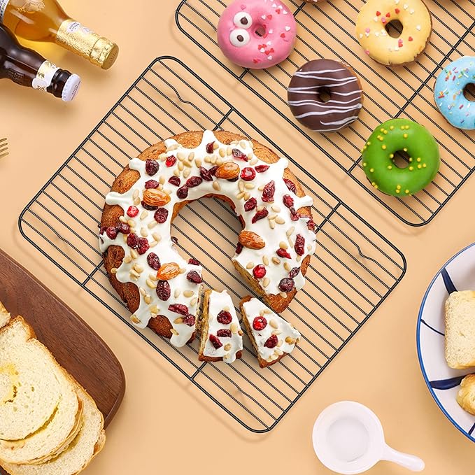 P&P CHEF Cooling Baking Rack Pack of 2, Stainless Steel Cooling Racks for Cooking Baking Roasting Grilling Drying, Dense Wires & Smooth Edge, Easy to clean, Black,11.6" x 9"
