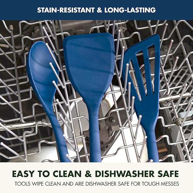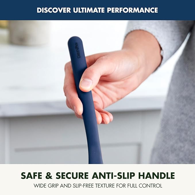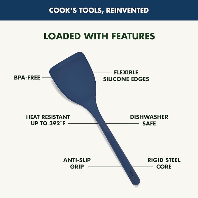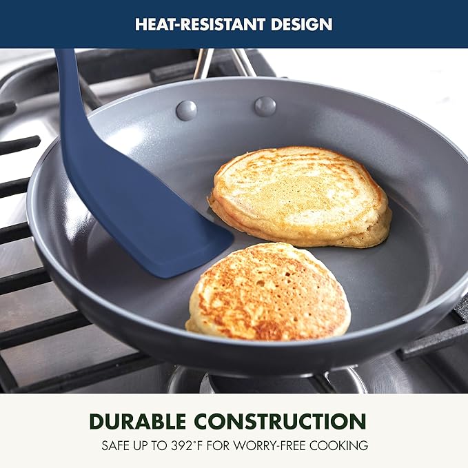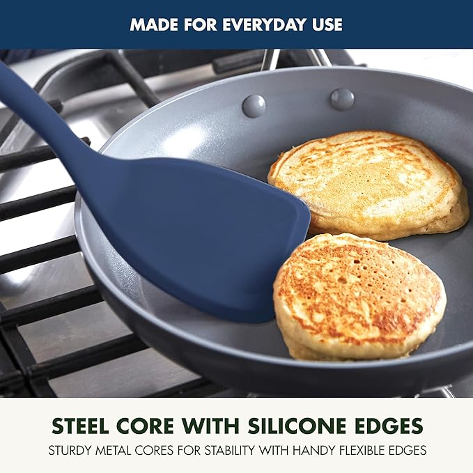 GreenPan Silicone Solid Turner Spatula, Flipping Cooking Kitchen Utensil, Flexible Rubber Nonstick Cookware, Rigid Steel Core, Heat-Resistant, Anti-Slip Handle, BPA-Free, Dishwasher Safe, Blue