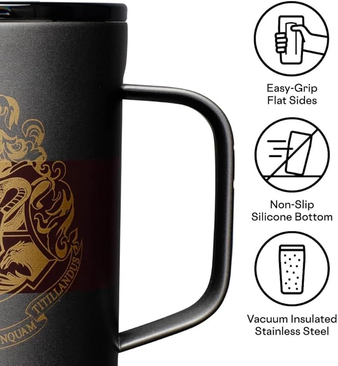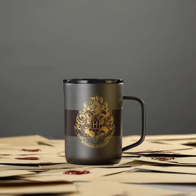Corkcicle Harry Potter Coffee Mug - Stainless Steel Insulated Cup With Lid For Tea & Coffee - Non-Slip Silicone Base - Durable Travel Mug - Dishwasher Safe - BPA Free - 16 oz - Hogwarts Crest