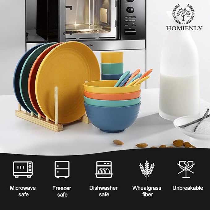 Homienly Wheat Straw Plates and Bowls Sets, 20 PCS Dishes Dinnerware Sets,Unbreakable Microwave and Dishwasher Safe Dish Set, Reusable Kids Plates and Bowls Sets for Kitchen, Outdoor, RV (Multicolor)