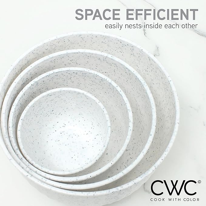 COOK WITH COLOR Prep Bowls with Lids- Wide and Deep Nesting Plastic Small Mixing Bowl Set with Lids, 8 Piece Set - Deep Bowls, Speckled White