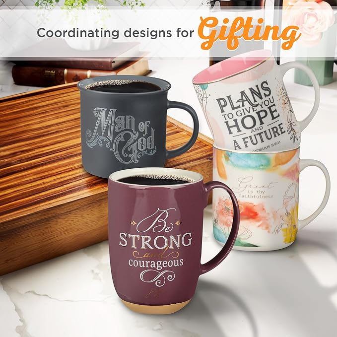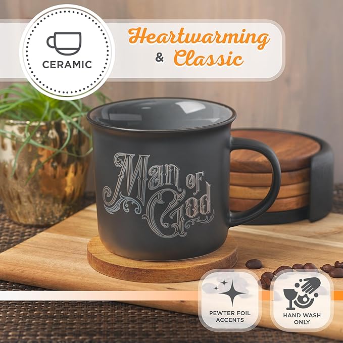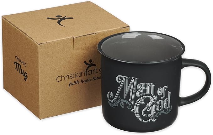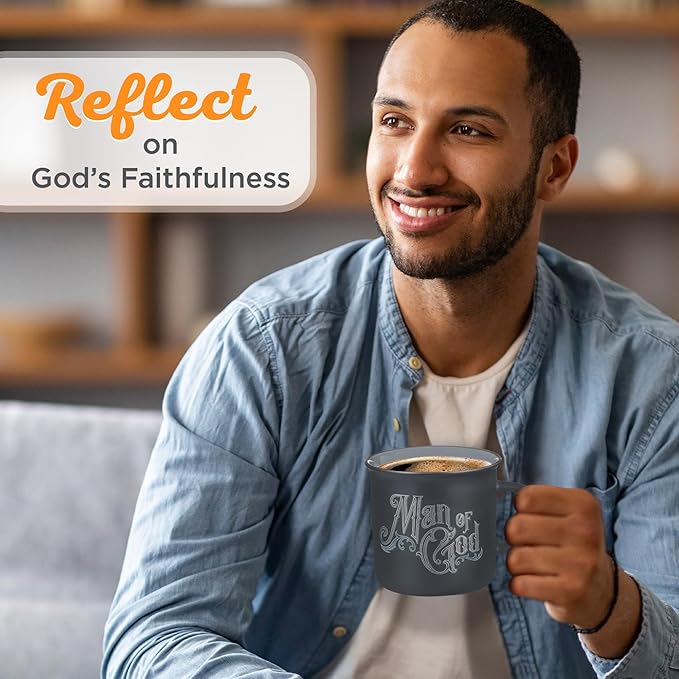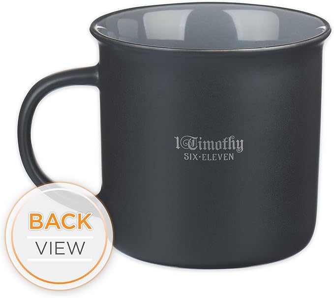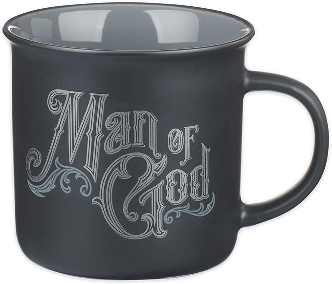 Christian Art Gifts Charcoal Gray Camp-Style Ceramic Coffee Mug – 13 oz. Lead and Cadmium-Free Non-Toxic Inspirational Scripture Coffee and Tea Mug for Men with Bible Verse: Man of God –1 Timothy 6:11