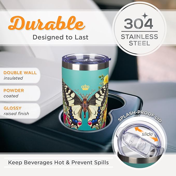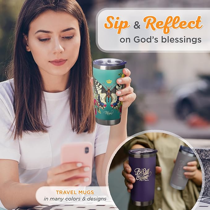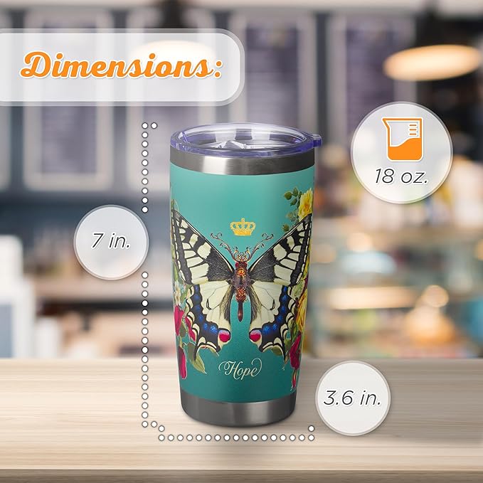 Christian Art Gifts Stainless Steel Double Wall Vacuum Insulated Tumbler 18 oz Butterfly Teal BPA-free Travel Mug with Retractable Lid Inspirational Bible Verse for Women - Hope -Isaiah 40:31
