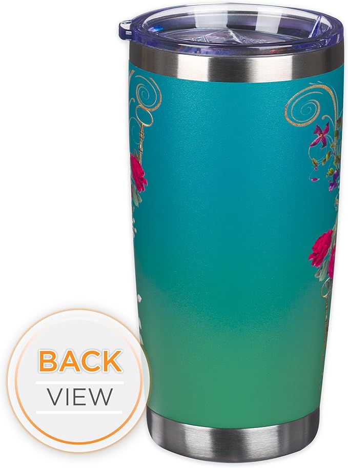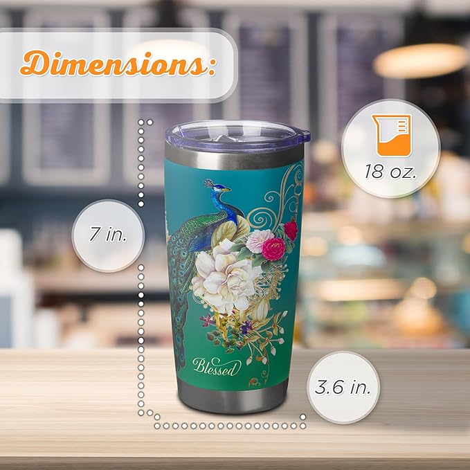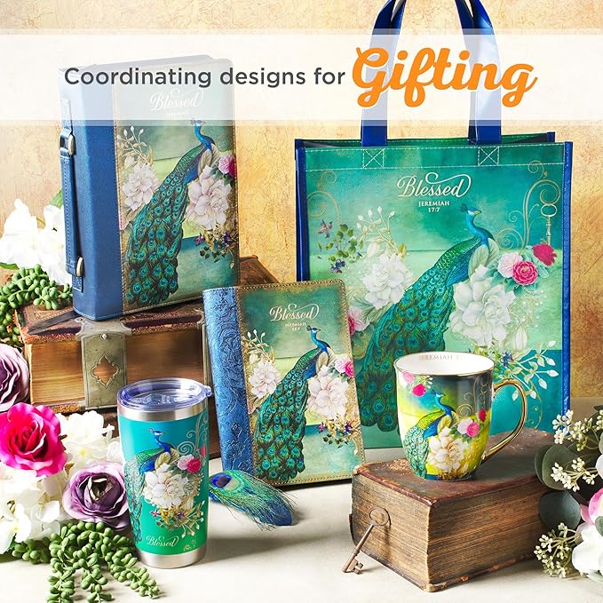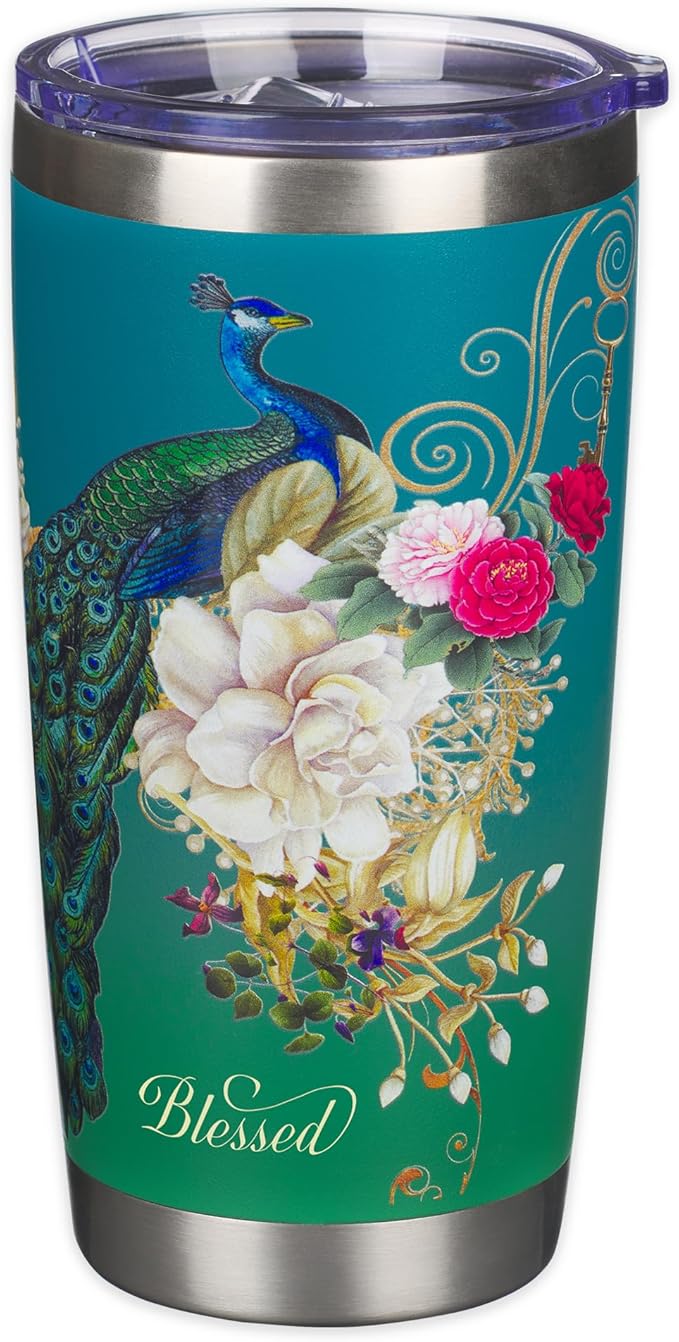 Christian Art Gifts Stainless Steel Double Wall Vacuum Insulated Tumbler 18 oz Peacock Teal Travel Mug with Retractable Lid Inspirational Bible Verse for Women - Blessed Faith -Jeremiah 17:7