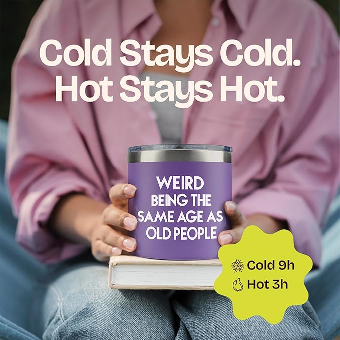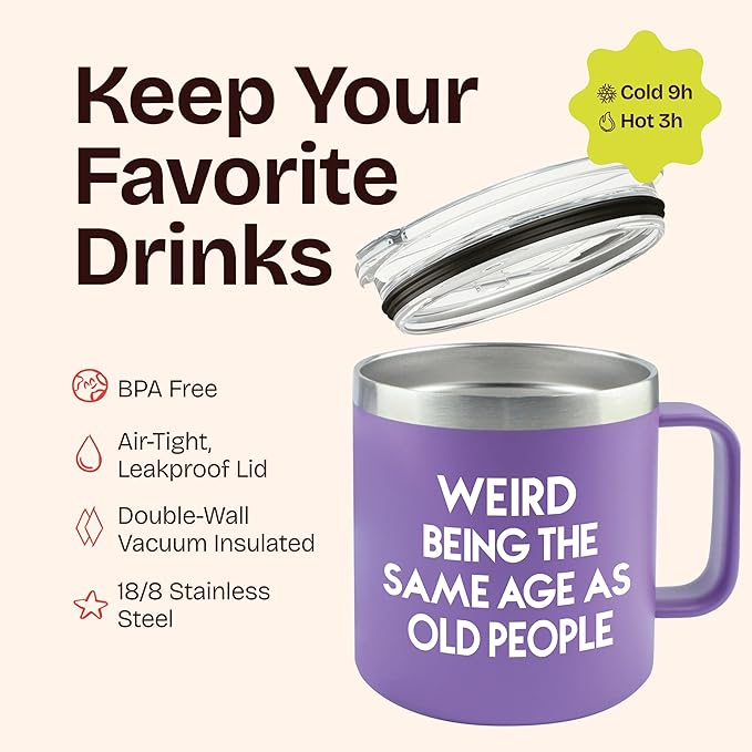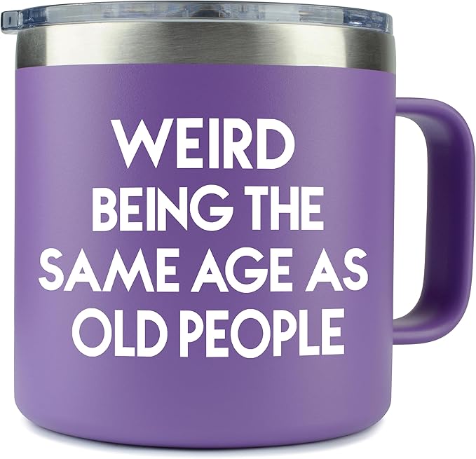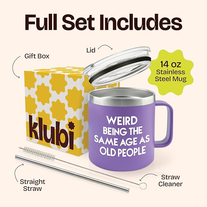 KLUBI 40th Birthday Gifts Women - Weird Being The Same Age As Old People 14oz 50th 60th Birthday Gifts for Women Over 60 Purple Bday Gift Ideas for Adults Cute Funny Celebration Gift for Elderly