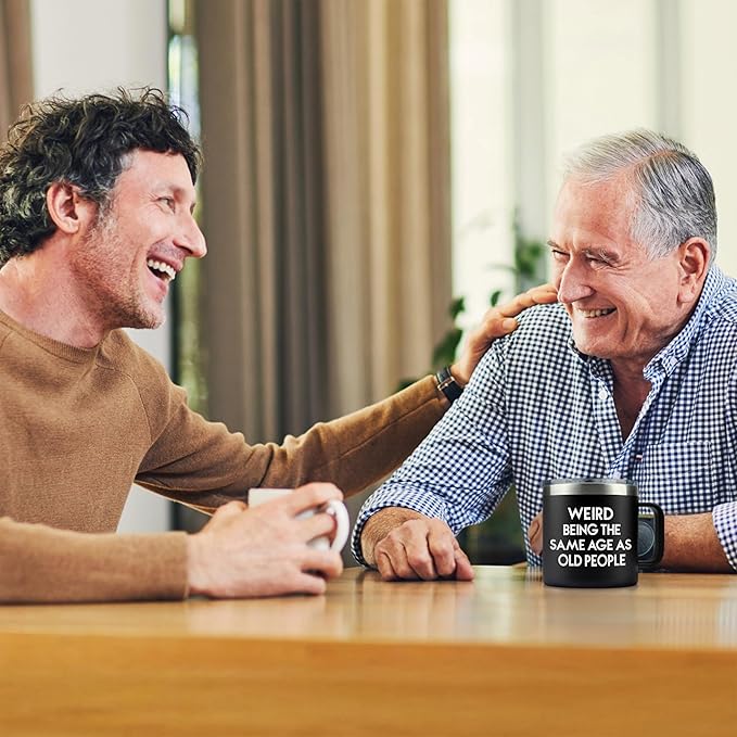 40th 50th 60th 70th Birthday Gifts for Men Fathers Day - Weird Being the Same Age as Old People Mug 14oz Tumbler Black Gifts for Dad Birthday Gift Ideas for 70 Year Old Man Funny Gag Gift for Elderly