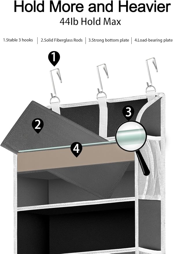 1 Pack Over The Door Organizer Storage, Hanging Organizer Closet with 5 Large Pockets 10 Mesh Pockets, 44 lbs Weight Capacity, Behind Door Storage for Nursery Bedroom Bathroom (Dark Grey)
