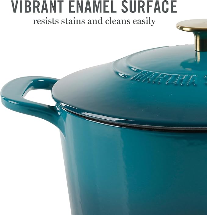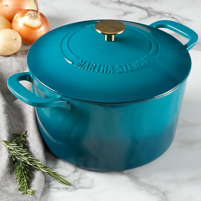 Martha Stewart Gatwick 7-Quart Enamel Cast Iron Dutch Oven – Emerald Ombre with Gold Knob – Durable Heavy-Duty Dutch Oven for Slow Cooking, Braising & Baking
