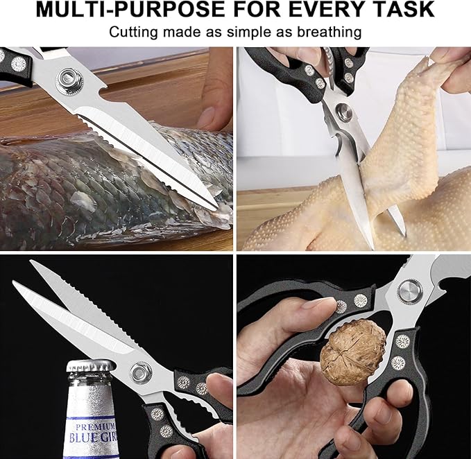 About This 【All Purpose Scissors】The multi-functional kitchen shears can also be used as nut crackers, bottle openers and scale scrapers,Heavy... Read more