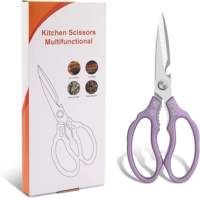 CGBE Kitchen Scissors All Purpose Heavy Duty, Ultra Sharp Stainless Steel Kitchen Shears Dishwasher Safe, Cooking Shears for Chicken, Poultry, Fish, Meat, Herbs & Grapes with Non-Slip Grips - Purple