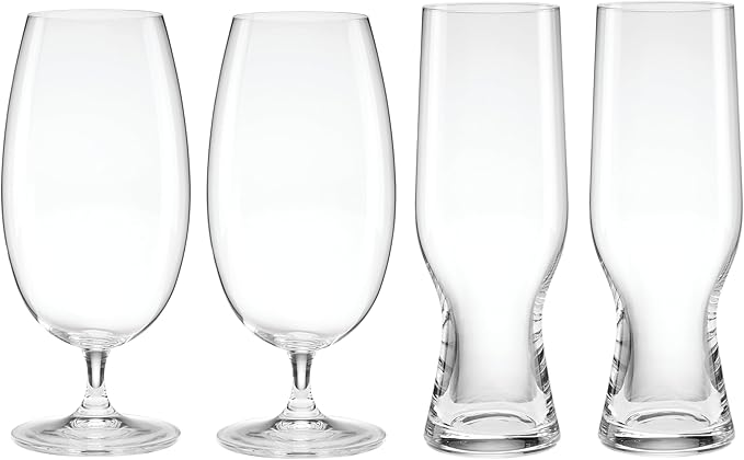About This Material: glass; crystal Dishwasher safe Microwave safe Includes (2) beer goblets and (2) Weizen beer glasses Beer goblet:... Read more
