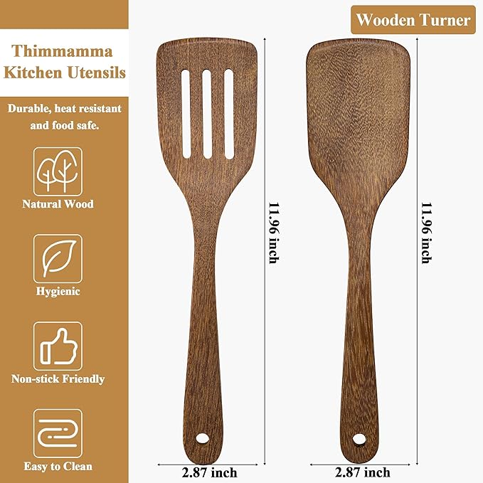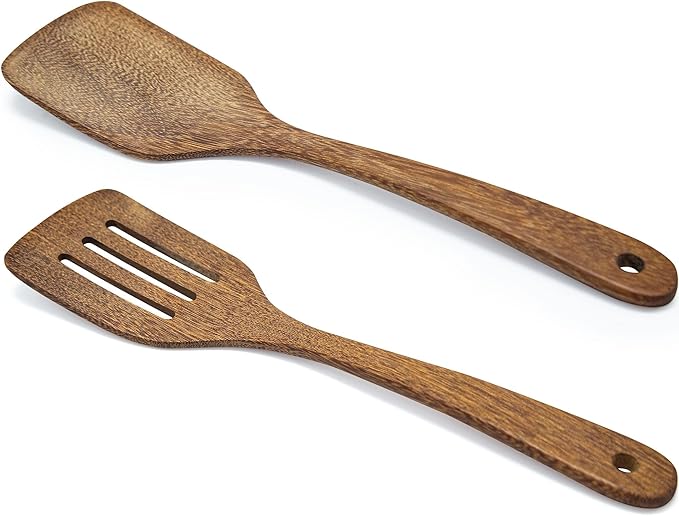 About This 2 PACK WOODEN COOKING SPATULAS - Wood cooking utensil Set includes slotted spatula and wood turner. Each wood... Read more