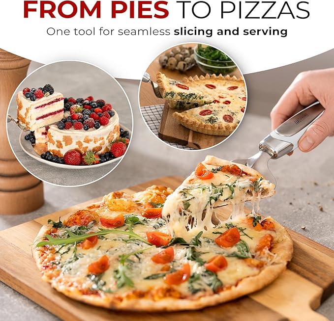 Orblue Pie Server, Essential Kitchen Tool, Serrated on Both Sides, Great for Right or Left Handed Chef, Stainless Steel Flatware , Cake Cutter,White