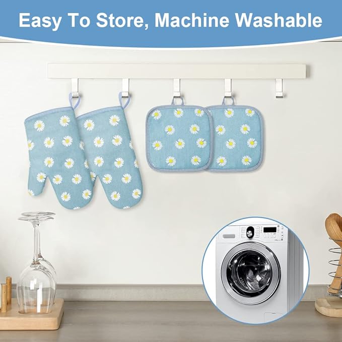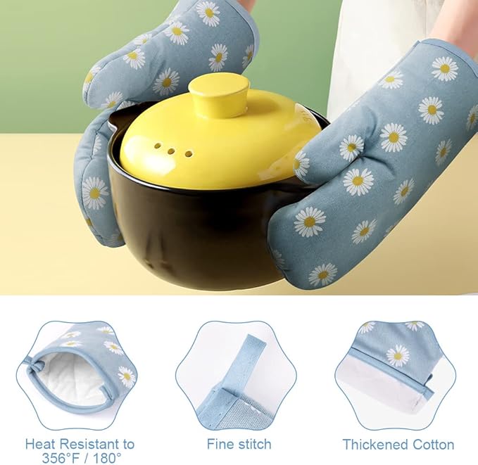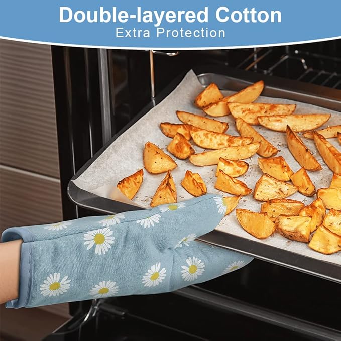 AUAUY Oven Mitts and Pot Holders, 392°F Heat Resistant Cooking Gloves and Hot Pads, Baking Mittens Grilling Gloves BBQ Gloves. Non-Slip Kitchen Mittens Home Essentials for Oven Cooking Baking Grilling