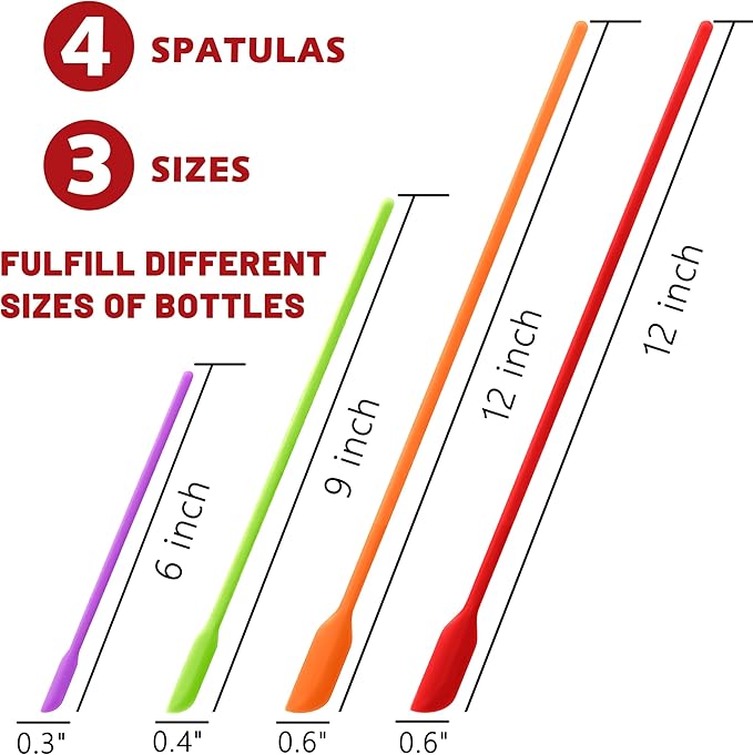 Anaeat Mini Silicone Spatulas - Set of 4 Multifunctional Small Kitchen Scraper Lotion Stirrer Tiny Makeup Beauty Spatula Reusable for Jam Jar, Cosmetic Bottles, Narrow Can and Thin Bottles (Colorful)