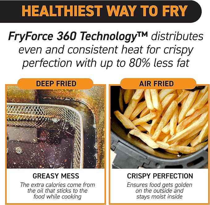 Gourmia Air Fryer Oven Digital Display 5 Quart Large AirFryer Cooker 12 1-Touch Cooking Presets, XL Air Fryer Basket 1500w Power Multifunction Black and Stainless Steel Accents FRY FORCE GAF536